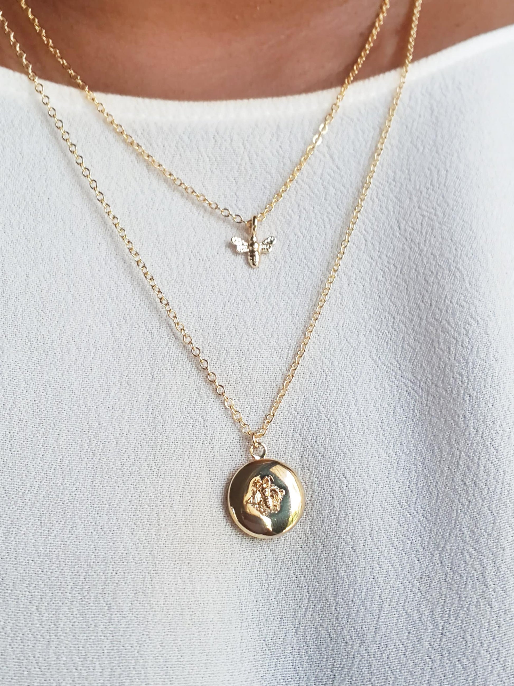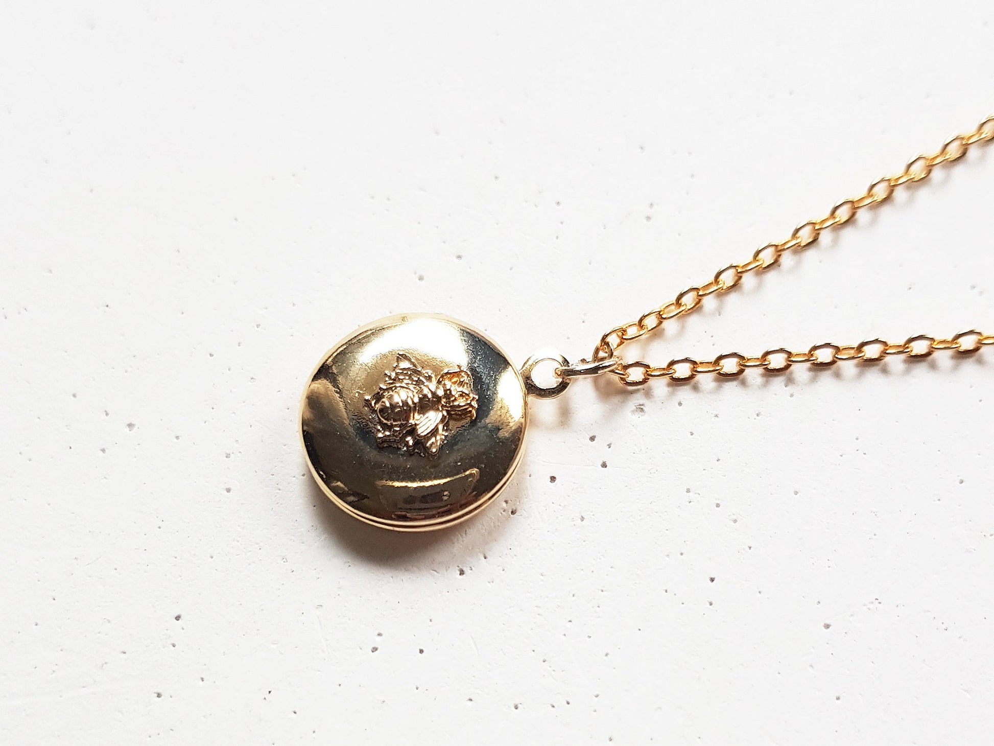 Dainty Gold Bee Locket Necklace - Personalized Keepsake